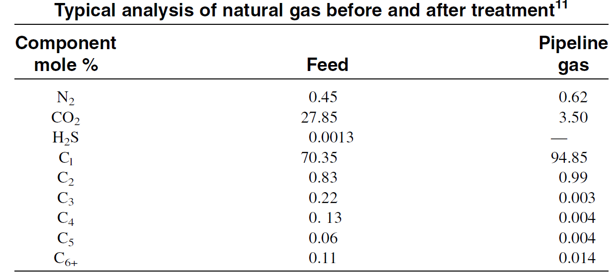 The condensed hydrocarbons or natural gas liquids (NGL) are stripped from the rich solvent, which is recycled. Table 1-2 compares the analysis of natural gas before and after treatment. Dry natural gas may then be used either as a fuel or as a chemical feedstock. Another way to recover NGL is through cryogenic cooling to very low temperatures (–150 to –180°F), which are achieved primarily through adiabatic expansion of the inlet gas.