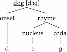 Nucleus and coda together (the elements after the onset) are known as the rhyme (or rime), thus giving us the following hierarchical structure: