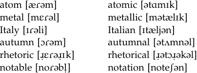 For many speakers of American English, words such as letter, atom, header, and ladder are pronounced as [lεɾɚ], [æɾəm], [hεɾɚ], [læɾɚ], respectively. This process, which is known as flapping (tapping in some books, which is a more correct characterization), converts an alveolar stop to a voiced flap/tap. The most conducive environment for this process is intervocalic, when the second syllable is not stressed. Thus, while attic [ǽɾɪk] has a flap, attack [əthǽk] does not because, in the latter, the alveolar stop is the onset of a stressed syllable. This pattern is also revealed in morphologically related but prosodically different word pairs. Thus, while the /t/ targets in the left column below (in unstressed syllables) undergo this process, they do not do so in the morphologically related words in the right column (in stressed syllables).