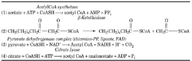Table 1. Enzymes that Form Acetyl CoA