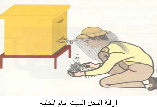 * في حالة الإصابات الخفيفة يكتفي بتغذية الطوائف بمحلول سكرى مع إزالة النحل الميت من داخل الخلية ومن أمامها.