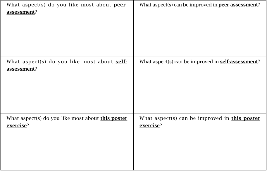 Your comments are valuable to help us to improve this method of assessment. Please let us have your honest opinion.