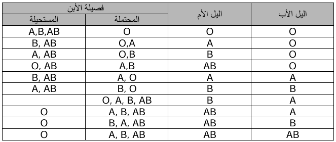 الجدول (31) (وراثة عوامل ABO الدولية (6)