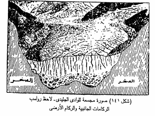 (ب) تعرض جوانب الوادى الشديدة الانحدار لتوالى عمليات تجمد المياه وانصهارها ، وبالتالي تتسع الشقوق والفوالق الصخرية ، ويتيسر فعل التعرية في نحت الصخور واضافة مواد جديدة إلى الرواسب الجانبية للدهر الجليدي.
