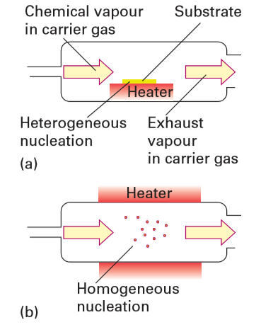 Figure 25.5 Chemical vapour methods to achieve (a) thin film growth and (b) nanoparticle production.