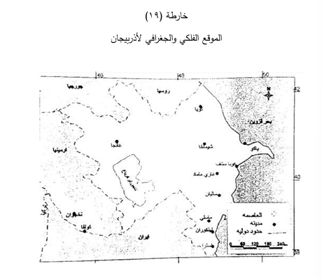 أ- الموقع الفلكي : تقع أذربيجان بين دائرتي عرض (38-42) شمالاً وبين خطي طول (45-50) شرقاً وهي بذلك تمتد فقط على (4) من دوائر العرض ، لكنها تتسم بتنوع مناخي ينعكس على مجمل الأنشطة الاقتصادية بشكل إيجابي.