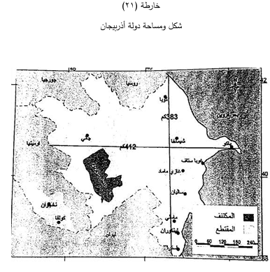 يميل شكل مساحة دولة أذربيجان إلى غلبة الامتداد العرضي على الطول من خلال النظر إلى الفرق في اختلاف المسافة بين الشرق والغرب والشمال والجنوب، كما أن هناك أجزاء من الدولة بعيدة عن مركز القرار ، بالإضافة إلى مساحات منها أشبه بـ (الجيب السياسي كما هو إقليم (ناخجون) الذي تكاد أراضي أرمينيا ان تفصله عن أذربيجان والأكثر من هذا ان إقليم (ناخجون) تتواجد فيه أقلية أرمينية ممكن ان تستغل من أرمينيا في حالة سوء الأوضاع الداخلية لأذربيجان ، ويعد شكل دولة أذربيجان من الأشكال غير المنتظمة ويشكل ذلك ضعفاً جيوبولتيكياً يضاف إلى ما تقدم من أعباء سلبية على الدولة.