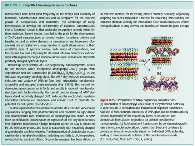Poly(propene fumarate) (PPF) cross-linked with poly(propene fumarate)-diacrylate (PPF-DA) is an injectable, biodegradable material. Although PPF shows great potential as a material for bone tissue engineering where mechanical properties such as tensile strength are not crucial, such as the trabecular bone, its mechanical properties are inferior to those required for the more demanding human bone applications, such as cortical bone. A promising strategy to improve the mechanical properties of a polymer is to mimic the architecture of bone or to incorporate inorganic particles into the polymer matrix. For example, significant increases have been observed in the compressive mechanical properties of PPF by the incorporation of calcium phosphate. The extent to which inorganic particles modify the polymer properties is associated with their size, shape, and uniformity of dispersion, as well as with the degree of interaction between the inorganic and organic components (similar to the red abalone shell, Box 25.4). Chemically modified inorganic materials that allow for optimal dispersion and interaction with the polymer matrix therefore seem to be ideal candidates for use in bionanocomposites. A hybrid alumoxane nanoparticle, or a partially hydrolysed aluminium oxyhydroxide with surrounding organic material (Fig. 25.39), with a long carbon chain and a reactive double bond dispersed in PPF/PPF-DA, shows over a threefold increase in strength over polymer resin alone. Several approaches have been successful for attaching nucleic acids to nanoparticles, which is then followed by DNA hybridization like that mentioned in Section 25.10. Various functional inorganic nanomaterials, such as semiconductors, fullerenes, metals, and oxides, have been considered for use in bottom-up approaches to the design of systems that bridge inorganic and biological materials. One approach is to functionalize the surface of nanoparticles for selective molecular attachment; such materials are used in the development of biosensors, nanoprobes, drug transporters, and other smart devices (Box 25.5).