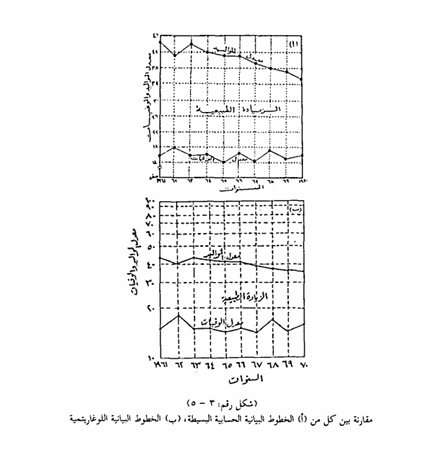 من العيوب الأساسية في طريقة الخطوط أو المنحنيات البيانية المتعددة -Poly graphs أنها تعطينا مجموعة من الخطوط أو المنحنيات التي يصعب تفسيرها بسبب زيادة عددها وكثرة تقاطعها ولكن يمكن الاستعانة بطريقة مبتكرة تعطينا احساس بالمنظر العام Panoramic effect لمنحنيات الاتجاه العام وذلك حتى تسهل عملية المقارنة بين هذه المنحنيات ومثل ذه المقارنات لها أهميتها وفائدتها في حالة الرغبة في ابراز وتوضيح أن اتجاه عام كان يتميز به تطور السكان في منطقة ما فيما مضى، مازال صحيحا وحقيقيا السكان آخرين بنفس المنطقة في الوقت الحاضر، أو بعبارة أخرى أن الاتجاه العام لتطور السكان في الوقت الحالى هو صورة طبق الأصل لتطورهم في الماضي ومنه يمكن تقدير الاحتمالات المستقبلية لهذا التطور على أساس الاتجاه العام الحالي.