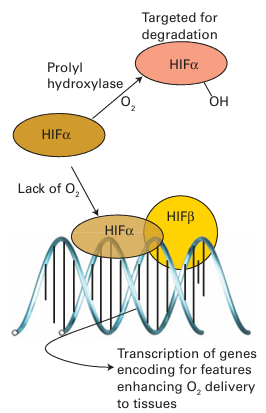 Figure 27.51 The principle of O2 sensing by prolyl oxygenases.