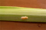 1- امتصاص الحوريات (خمسة أطوار) والبالغات كعصارة النبات من الخوص والجريد والعذوق والثمار حيث يسبب ذلك شحوب هذه الأجزاء النباتية واصفرارها.