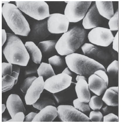 Figure 27.55 Our gravity sensor. Crystals of biologically formed calcite that are found in the inner ear. (Photograph supplied by Professor S. Mann, University of Bristol.)