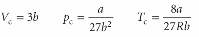 at the critical point. The solutions of these two equations (and using eqn 1.21b to calculate pc from Vc and Tc) are