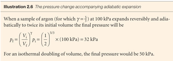 We also show in Further information 2.1 that the pressure of a perfect gas that undergoes reversible adiabatic expansion from a volume Vi to a volume Vf is related to its initial pressure by