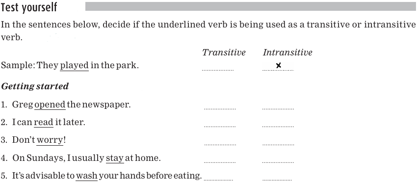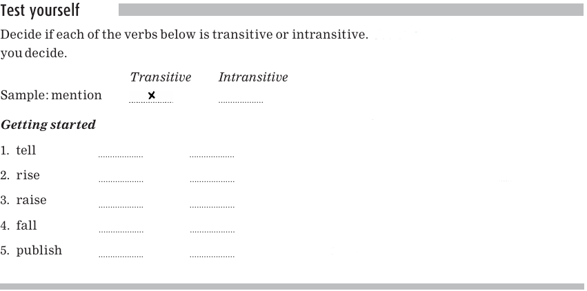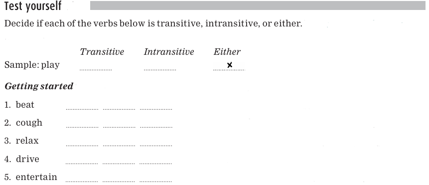 Let’s use these Quick tips to decide which of the following verbs are transitive and which are intransitive: