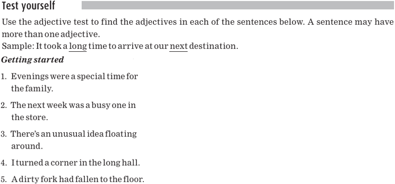 Identifying adjectives
