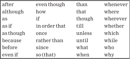Notice that the subordinating conjunction is always the first word of the dependent clause.