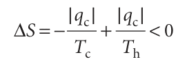 The discussion of the text is the basis of the thermodynamic assessment of the power needed to cool objects in refrigerators. First, we consider the work required to cool an object, and refer to Fig. 3.10. When an energy |qc| is removed from a cool source at a temperature Tc and then deposited in a warmer sink at a temperature Th, as in a typical refrigerator, the change in entropy is
