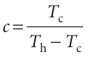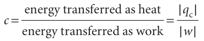 The process is not spontaneous because not enough entropy is generated in the warm sink to overcome the entropy loss from the hot source. To generate more entropy, energy must be added to the stream that enters the warm sink. Our task is to find the minimum energy that needs to be supplied. The outcome is expressed as the coefficient of performance, c: