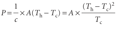 We see that the power increases as the square of the temperature difference we are trying to maintain. For this reason, air-conditioners are much more expensive to run on hot days than on mild days.