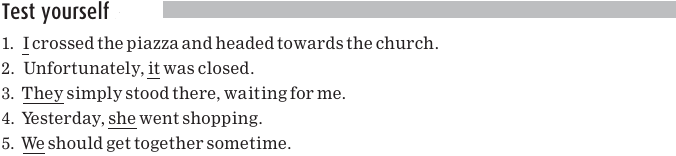 Notice that in each sentence pair, the underlined pronoun replaces the underlined noun. The underlined noun is doing the action in the sentence and comes before the verb. This kind of noun is called the subject of the sentence and the pronoun that replaces it is called a subject pronoun.
