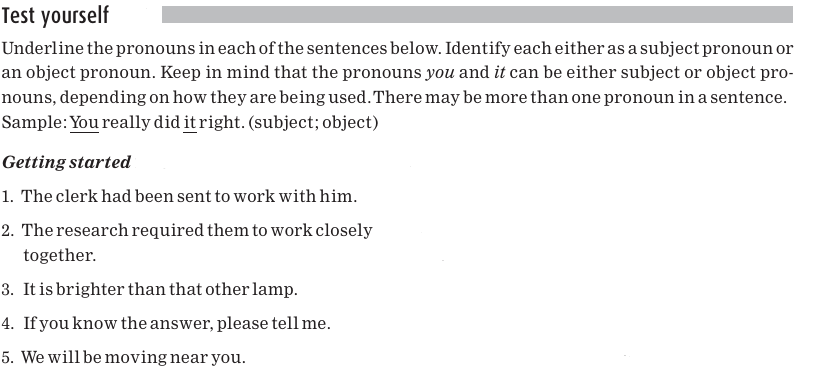 You can see that two pronouns, you and it, are particularly hardworking: they can function as either subject or object pronouns.