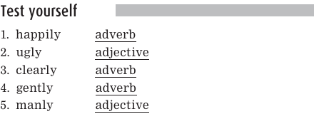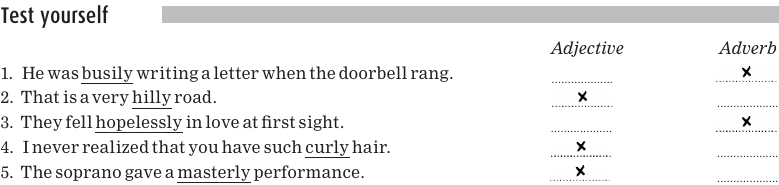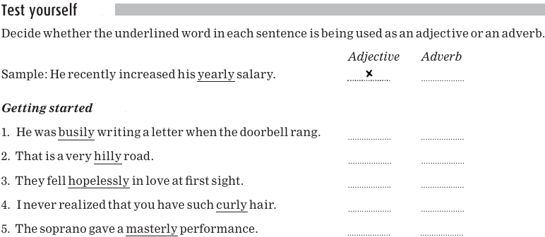 Note that some nouns, for example the flower lily, end in-ly as well. And just to add a little more spice to the recipe, there are some words that can be used either as adverbs or as adjectives: