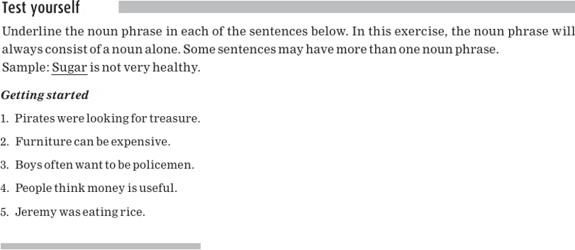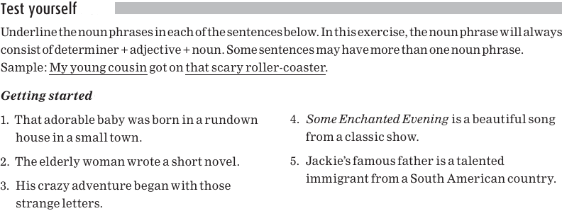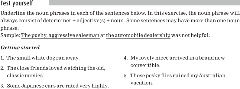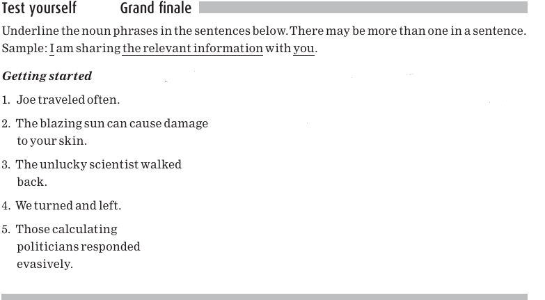 Here are the noun phrases again, with the nouns underlined: