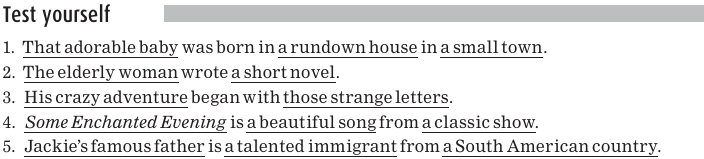 Here are examples of noun phrases consisting of a determiner plus an adjective plus a noun (the whole noun phrase is underlined):