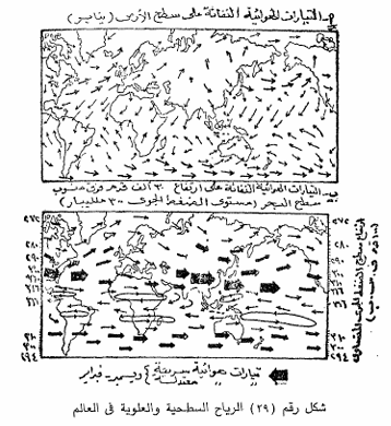 ويلاحظ من تتبع الشكل رقم (29) أن الرباح أو التيارات الهوائية النفاثة عند منسوب الضغط 300 ملليبار غير دقيقة في اتجاهاتها وذلك في بعض الاقاليم المدارية ، ومرد ذلك نقص الدراسات الخاصة بها ، وتعكس الاسهم الاتجاه العام للتيارات الهوائية والتي تضاعف سرعة الطائرات التي تسير فى نفس الاتجاه ، بينما تعترض تقدم الطائرات المجابهة لها وتقلل كثيرا من سرعتها.