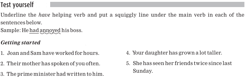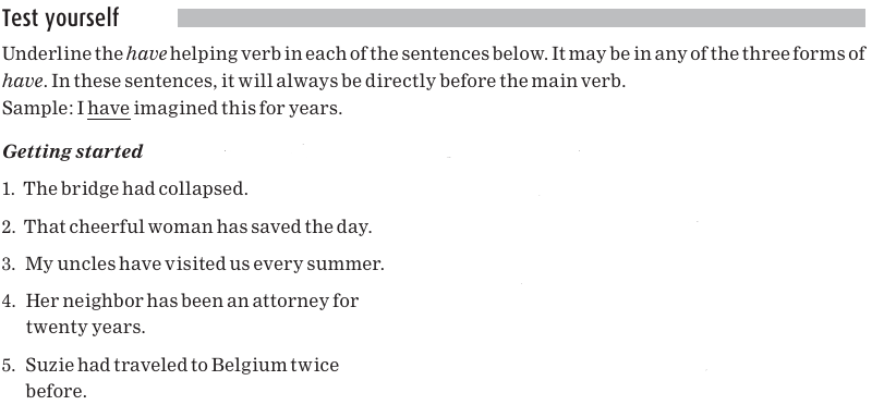 In each of the sentences below, the helping verb is a form of have-either have, has, or had- and is underlined.