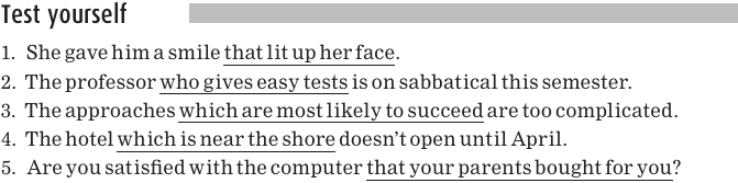 We’ve seen (in Complex sentences) that other dependent clauses are linked to the rest of the sentence by subordinating conjunctions. The same is true of relative clauses. Those subordinating conjunctions which link relative clauses to the rest of the sentence are called relative pronouns, and you may remember that we talked about them earlier. The relative pronoun which introduces the relative clause is underlined in the sentences below: