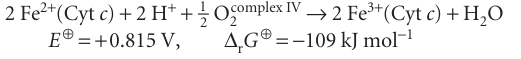 H++NADH+Q → NAD++QH2 E⊕=+0.42 V, ∆rG⊕=−81 kJ mol−1