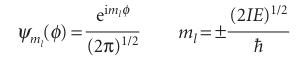 The quantity ml is just a dimensionless number at this stage. We now select the acceptable solutions from among these general solutions by imposing the condition that the wavefunction should be single-valued. That is, the wavefunction ψ must satisfy a cyclic boundary condition, and match at points separated by a complete revolution: ψ (φ + 2π) = ψ(φ). On substituting the general wavefunction into this condition, we find