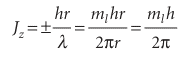 Because Jz =±pr, and, from the de Broglie relation, p = h/λ, the angular momentum about the z-axis is