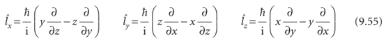 Throughout the preceding discussion, we have referred to the z-component of angular momentum (the component about an arbitrary axis, which is conventionally denotedz), and have made no reference to the x- and y-components (the components about the two axes perpendicular to z). The reason for this omission is found by examining the operators for the three components, each one being given by a term like that in eqn 9.45:
