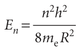 In Impact I9.1 we outlined some advantages of working in the nanometre regime. Another is the possibility of using quantum mechanical effects that render the prop erties of an assembly dependent on its size. Here we focus on the origins and con sequences of these quantum mechanical effects. Consider a sample of a metal, such as copper or gold. It carries an electrical current because the electrons are delocalized over all the atomic nuclei. That is, we may treat the movement of electrons in metals with a particle in a box model, though it is necessary to imagine that the electrons move independently of each other. Immediately, we predict from eqn 9.6 that the energy levels of the electrons in a large box, such as a copper wire commonly used to make electrical connections, form a continuum so we are justified in neglecting quantum mechanical effects on the properties of the material. However, consider a nanocrystal, a small cluster of atoms with dimensions in the nanometre scale. Again using eqn 9.6, we predict that the electronic energies are quantized and that the separation between energy levels decreases with increasing size of the cluster. This quantum mechanical effect can be observed in ‘boxes’ of any shape. For example, you are invited to show in Problem 9.39 that the energy levels of an electron in a sphere of radius R are given by