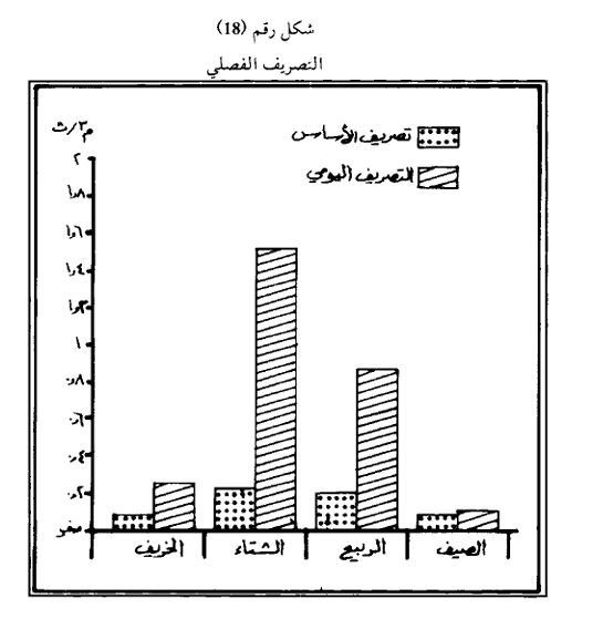 إن التعرف على خصائص التصريف الفصلي في الأحواض المائية لـه مبرراتها في دراسة مميزات المياه الجارية في جميع فصول السنة ، ولمعرفة مدى احتياجات المنطقة المائية بكافة استخداماتها وموازنتها مع كمية المياه الجارية في الأحواض ولا سيما الاستخدامات الزراعية إذ أن التباين كبير جداً بين معدلات التصاريف من سنة إلى أخرى طبقاً للسنة المائية كونها رطبة أو متوسطة أو جافة ومعرفة خصائص التصريف الفصلي من خلال معرفة نسبة الجريان في كل فصل من فصول السنة والذي يعتمد على فترة سقوط الأمطار أو ذوبان الثلوج أو توفر المياه الجوفية المغذية للأحواض النهرية في فصل الخريف والشتاء والربيع والصيف وتختلف نسبة الجريان في كل حوض نهري حسب مواسم سقوط الأمطار في تلك الأحواض ، فمثلاً يزداد الجريان في أنهار العراق في فصل الشتاء والربيع بسبب زيادة كميات الأمطار الساقطة وذوبان الثلوج المتراكمة على قمم الجبال بينما يقل التصريف في فصل الصيف بسبب انعدام التساقط أما في الخريف فيقل التصريف أيضاً نتيجة لقصر هذا الفصل وهي فترة تصاريف واطئة حيث تستنفذ الأنهار جميع مصادر مياهها من أمطار وثلوج ومياه جوفية فضلا عن أن الأمطار الخريفية الأولى لا تؤدي إلى زيادة التصاريف وإنما تؤدي إلى تشبع التربة السطحية الجافة فقط ويمكن القول أن فصل الخريف فصل جاف في مثل هذه المناطق أما في المناطق ذات الأمطار الصيفية فيكون الجريان في فصل الصيف أكثر من الشتاء الذي يعد فصلاً جافاً. انظر الشكل رقم (18).