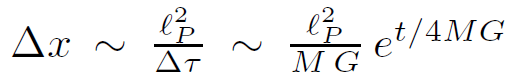 Thus in order to observer the proton before it crosses the horizon, we have to do it in a time which is exponentially small as t → ∞. Thus, what we need in order to be consistent with the thermal spreading of information is now clear. As the proton is observed over shorter and shorter time intervals, the region over which it is localized must grow.
