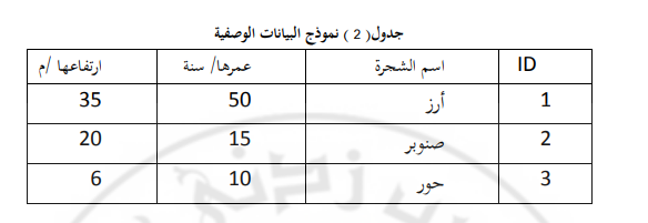 يقصد بالبيانات الوصفية المعلومات الكتابية التي تعبر عن الصفات والحقائق الخاصة بالبيانات المكانية، والبعض يقول إنها بيانات جدولية ونصية تصف الخصائص الجغرافية للمظاهر الموجودة من مثل اسم الشارع واسم المنطقة ومساحتها، ومالكها ونوع الطريق وطوله وغير ذلك وهي تجيب عن سؤال ( What is it) تخزن على شكل أعمدة وسطور قد تكون معلومات نصية أو أعداداً، وتعطي معلومات عن طبيعة الظاهرة ونوعيتها كل شريحة متجهة يجب أن يرتبط بها جدول خاص بها هذه الجداول ترتبط بالبيانات المكانية من خلال رقم تعريف الظاهرة ID يتم تخزين هذه البيانات في أعمدة خانات تبين السطور الخصائص الوصفية لكل ظاهرة.