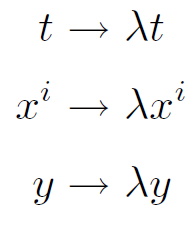 We will refer to AdS(5)⊗S(5) as the bulk space and the 4-dimensional boundary of AdS at y = 0 as the boundary. According to the Holographic Principle we should be able to describe everything in the bulk by a theory whose degrees of freedom can be identified with the boundary at y = 0. However the Holographic Principle requires more than that. It requires that the boundary theory has no more than 1 degree of freedom per Planck area. To see what this entails, let us compute the area of the boundary. Later we will regulate this divergence by moving in a little way from y = 0, but for the time being we can assume that the number of degrees of freedom per unit coordinate area is infinite. That suggests that the boundary theory might be a quantum field theory, and that is in fact the case. Another important fact involves the symmetry of AdS. It is obvious that the geometry is invariant under ordinary Poincare transformations of the 4-dimensional Minkowski coordinates t, xi. In addition there is a “dilatation” symmetry