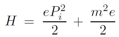 This form of H manifests a well-known fact about light cone physics. If we focus on the transverse degrees of freedom, the Hamiltonian has all the properties of a non-relativistic system with Galilean symmetry. The second term in H is just a constant, and can be interpreted as an internal energy that has no effect on the transverse motion. The first term has the usual non-relativistic form with e-1 playing the role of an effective transverse mass. This Hamiltonian and its associated quantum mechanics exactly describes the point particles of conventional free quantum field theory formulated in the light cone gauge.