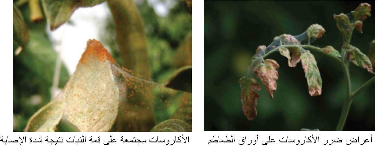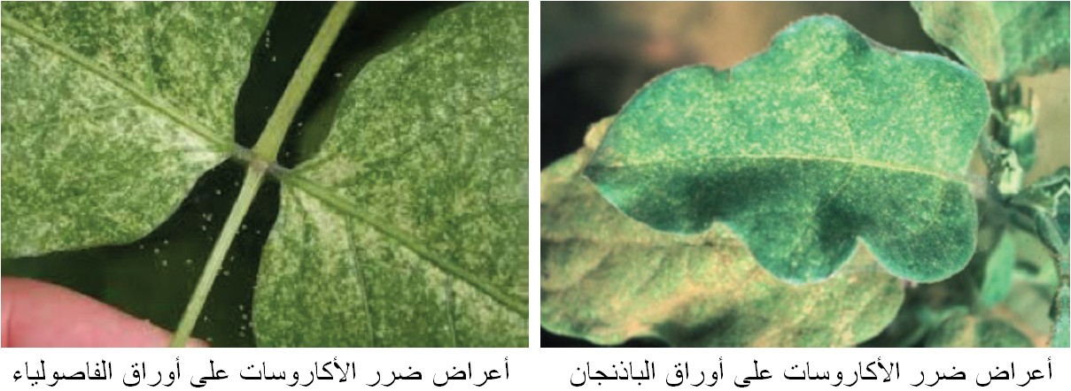 يعتبر الأكاروس ذو البقعتين (Tetranychus urticae) والذي يدعى أيضا بأكاروس البيوت الحامية من أكثر الأنواع انتشار وتوجد أنواعا كثيرة مشابهة لهذا النوع يعتبرها بعض العلماء سلالات من هذا النوع وهي تختلف عنه فقط في تفضيلها لبعض العوائل وبألوانها وشكلها وبالتالي يمكن الحديث هنا عن معقد لهذا النوع من الأكاروسات، ويتدرج لون هذا الأكاروس من الأخضر وحتى الأحمر، كما وأنه يعتبر نباتي التغذية ويمكن تصيب عددا كبيرا من العوائل النباتية سواء في البيوت الحامية أو في الزراعات المفتوحة، تتميز كل الأكاروسات بأجزاء فمها الثاقب الماص حيث تمتص محتوى خلايا الأنسجة المصابة وتظهر الأعراض الإصابة على شكل بقع صغيرة فاتحة اللون على السطح العلوي نتيجة امتصاص الأكاروس لمحتوى الخلايا لا تلبث أن تغطي كامل الجزء المصاب الذي يتبعه موت النبات غالبا ويترافق ذلك بإفراز خيوط حريرية وظهور أعداد كبيرة من الأكاروسات على الأجزاء العلوية من النبات المصاب.