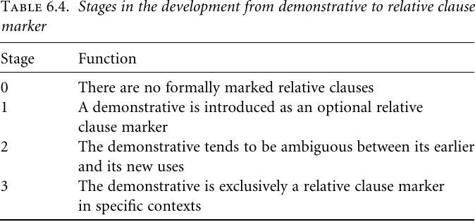 Accordingly, in both cases there was a demonstrative pronoun used non-recursively that was grammaticalized to a new syntactic structure, thereby giving rise to a recursive structure of clause subordination.