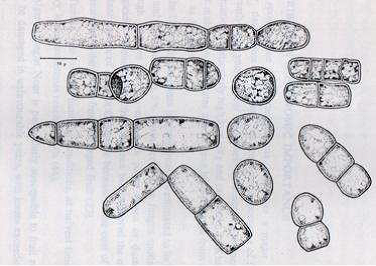 الابواغ الاحادية، الثنائية ومتعددة الخلايا للفطر Mauginiella scaettae