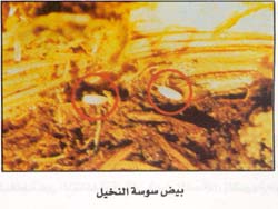 7- العناية بالعمليات الزراعية والبستانية لإنتاج نخلة في حالة قوية ونظيفة مع تقليم الفسائل الصغيرة وتقليل عددها لتسهيل فحصها واكتشاف أي إصابة.
