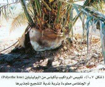7. وضع الفسيلة في اماكن مظللة بعد قلعها وتغطي بالرمل الرطب او الخوص او الخيش ويفضل زراعتها في المكان الدائم مباشرة.