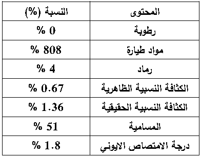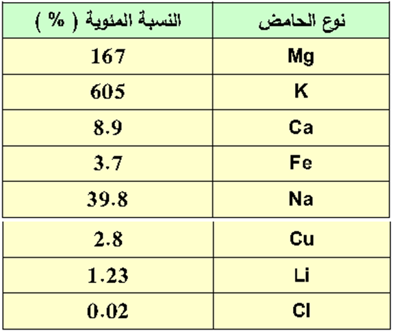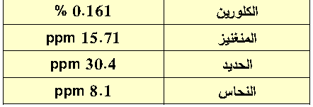جدول رقم 3. العناصر المعدنية في رماد نوى التمر