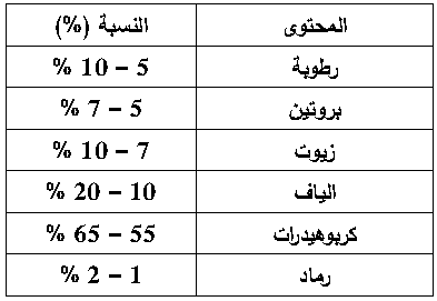 وتم تقدير المحتوى الكيميائي لنوى التمور العراقية حيث كانت التقديرات كما يلي: