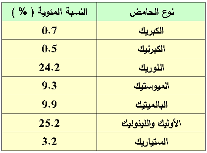 جدول رقم 2 نسب الأحماض الدهنية في نوى التمر